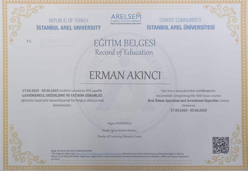 Gayrimenkul Değerleme ve Yatırım Uzmanlığı